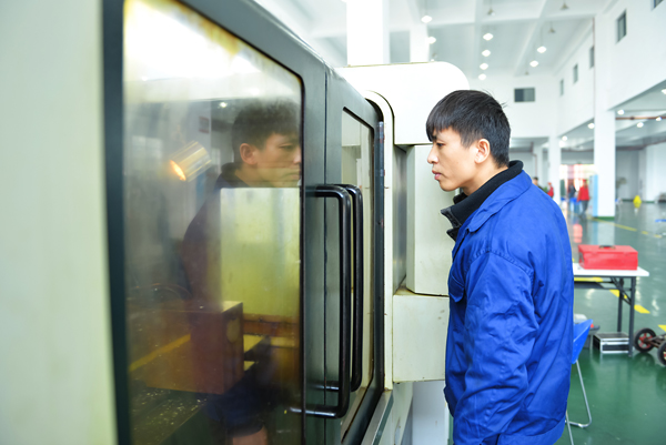 选手在认真查看加工情况