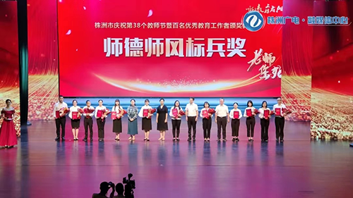 9月8日,株洲市庆祝第38个教师节暨百名优秀教育工作者颁奖典礼在神农大剧院隆重举行,从颁奖现场传来喜讯,开云·体育,开云(中国)教师易文斌荣获株洲市师德师风标兵奖。