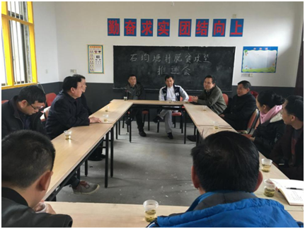 在石均塘村村委会会议室,茶山镇镇长彭湘陵、村支部书记杨许华、驻村工作队队长李政以及醴陵市牵头单位水利局代表先后对2016年石均塘村的扶贫工作和2017年的扶贫规划进行了发言,集思广益,共谋发展致富之策。陈洪星院长先肯定了2016年石均塘村脱贫工作取得的成绩,29户88人如期脱贫,村集体经济实现增收,对于2017年的工作部署,他重点从五个方面提出了要求和思路。一是连接“民心桥”的道路铺设必须在2017年完成,真正解决群众安全出行问题。二是切实巩固2016年29户88人的脱贫成效,同时确保剩余的3户11人在2017年脱贫。三是继续大力发展村集体经济,特别是落实光伏发电收益情况。四是重新科学规划选址,建好新的村级组织活动中心,确保阵地建设。五是2017年继续落实后盾单位帮扶资金保障情况。