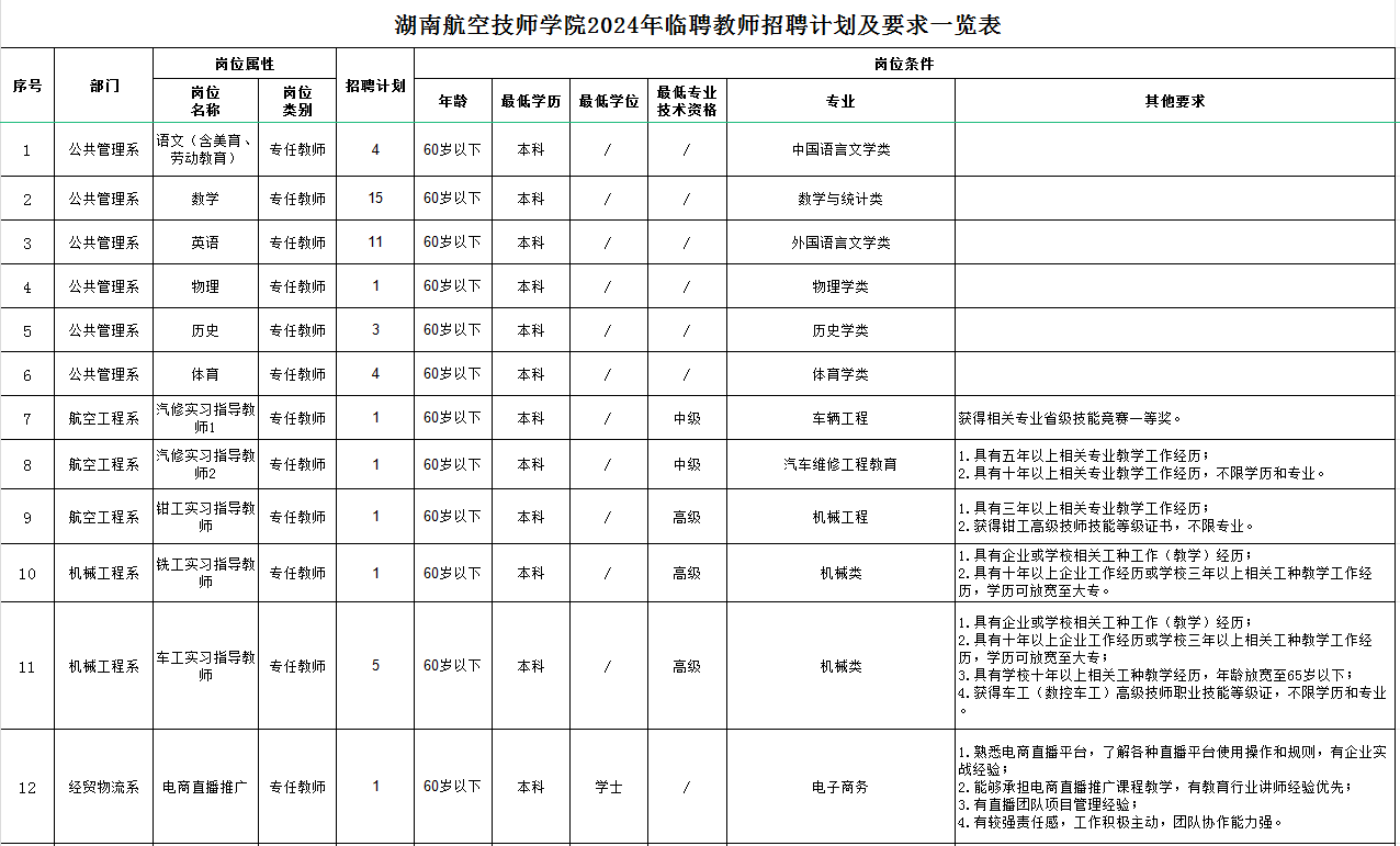 附件1:湖南航空技师开云·体育,开云(中国)2024年临聘教师招聘计划及要求一览表/Administration/Content/kindeditor/attached/file/20240826/20240826101628_8016.xlsx